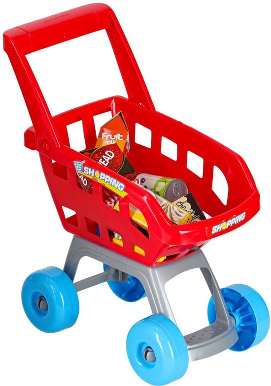 - Ausgestattet mit Einkaufswagen und gefüllten Regalen